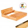 Kvalitné drevené pieskovisko o hrúbke dosky 2,1 cm, dostupné v v hnedej farbe. Rozmer 150 cm x 150 cm. Pieskovisko je vybavené 2 lavičkami po sklopení ktorých je pieskovisko chránené pred znečistením a tým máte istotu, že piesok má stále výbornú kvalitu. Hrany pieskoviska nie sú ostré, teda nepredstavuje pre dieťa nebezpečenstvo.
