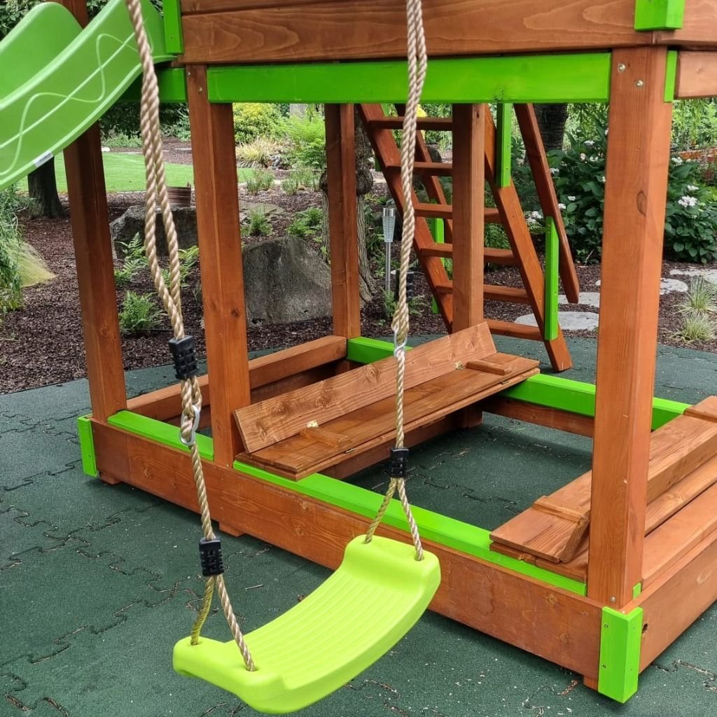 Detské hojdačky nie sú súčasťou balenia, no je možnosť ich doobjednania priamo v produkte.