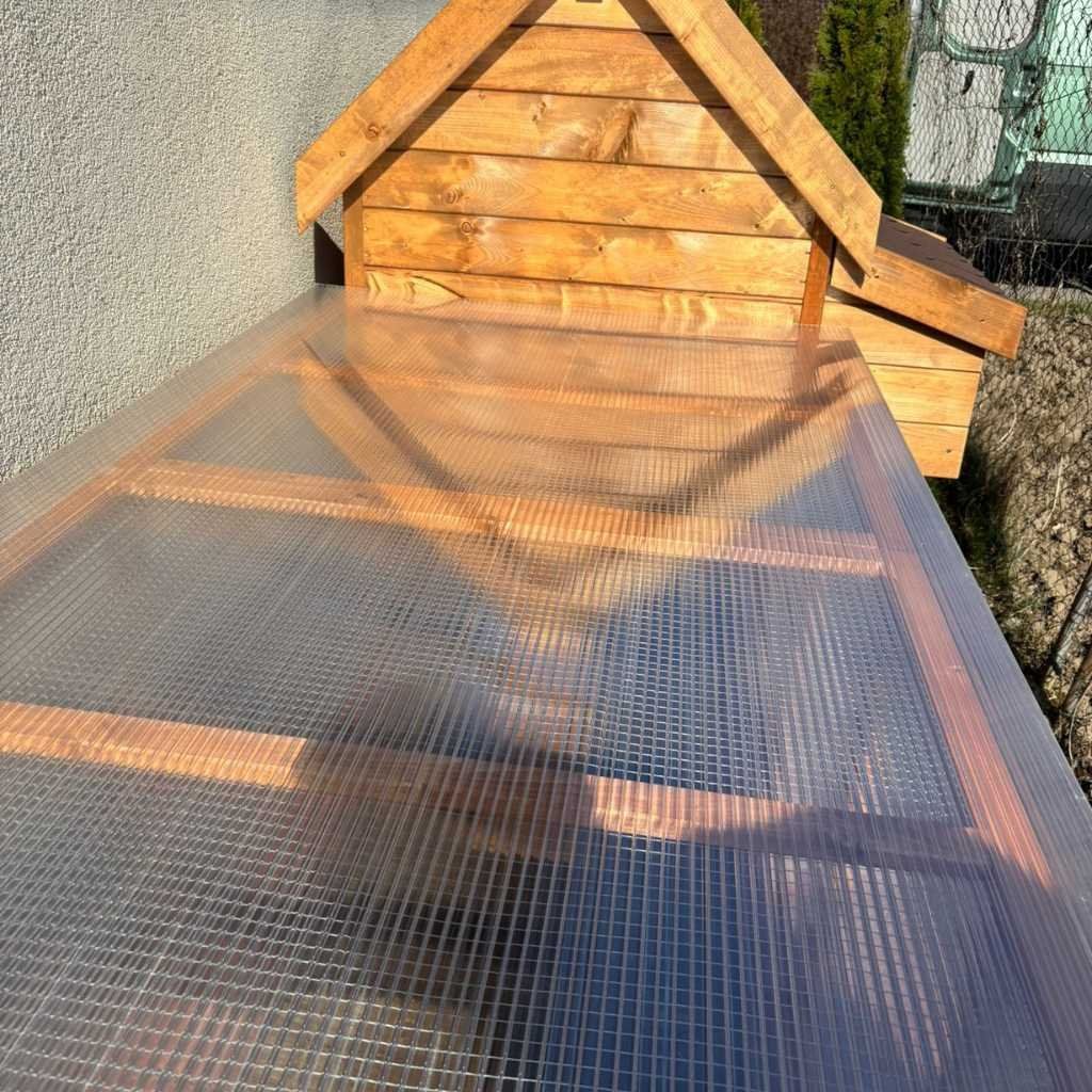 - Vchod do kurína. Kurín je vybavený 2 dvierkami. Predné dvierka slúžia ako vchod pre sliepočky , zadné ako čistiaci otvor pre jednoduchú údržbu kurína.