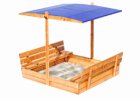 V našej ponuke nájdete detské pieskoviská s rozmermi 120 x 120 alebo 150 x 150 centimetrov.