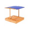 Rozmer 150 cm x 150 cm dostupné v 2 farbách. Na bokoch sa nachádzajú lavičky po sklopení ktorých je pieskovisko chránené pred znečistením, Na pieskovisku sa nachádza výškovo nastaviteľná MODRÁ strieška, ktorá chráni detičky pred priamym slnkom.