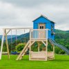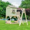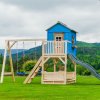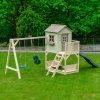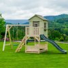Drevený záhradný domček pre deti Vanda 4 s dlhou šmykľavkou, pieskoviskom a predĺžením na detské hojdačky pokryje všetko, čo vaše dieťa potrebuje pre plnú zábavu a bezpečnú hru.
